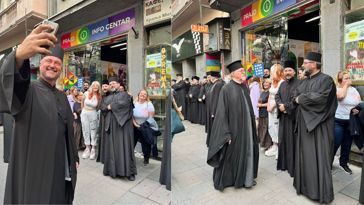 "Juče ispred Prajd Info Centra desio se spoj dva sveta. Tokom generalne probe današnjih litija, Prajd Info Centar bio je opkoljen sveštenstvom koje se slikalo sa volonterima i volonterkama i radnicima Prajd Info Centra. Interakcija koja je bila prijatna, zabavna i neuobičajena u ovoj klimi samo je dokaz kako odnos između crkve i LGBTI+ zajednice ne mora biti neprijateljski”, rekao je Miletić.